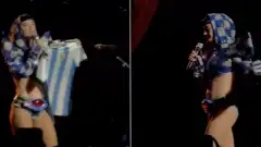 Katy Perry mostra camisa da Argentina em show e brinca: "Os brasileiros vão ficar muito bravos"
